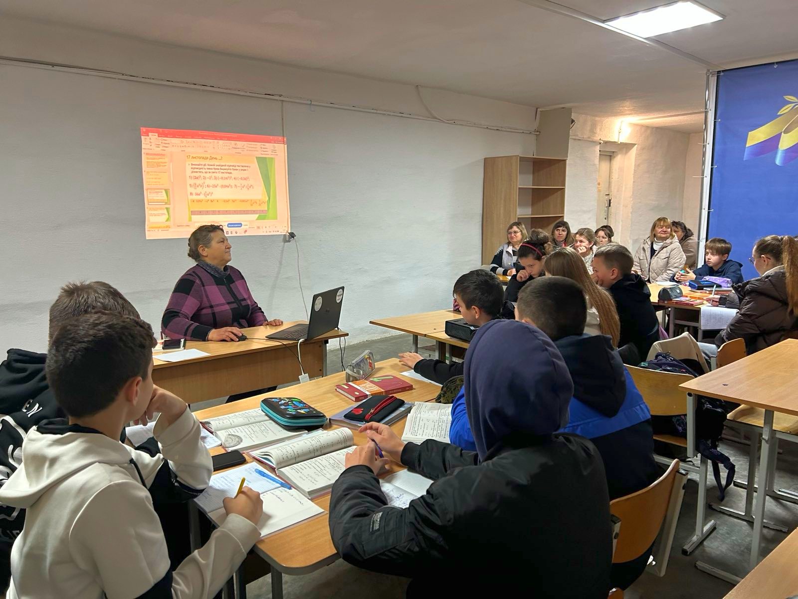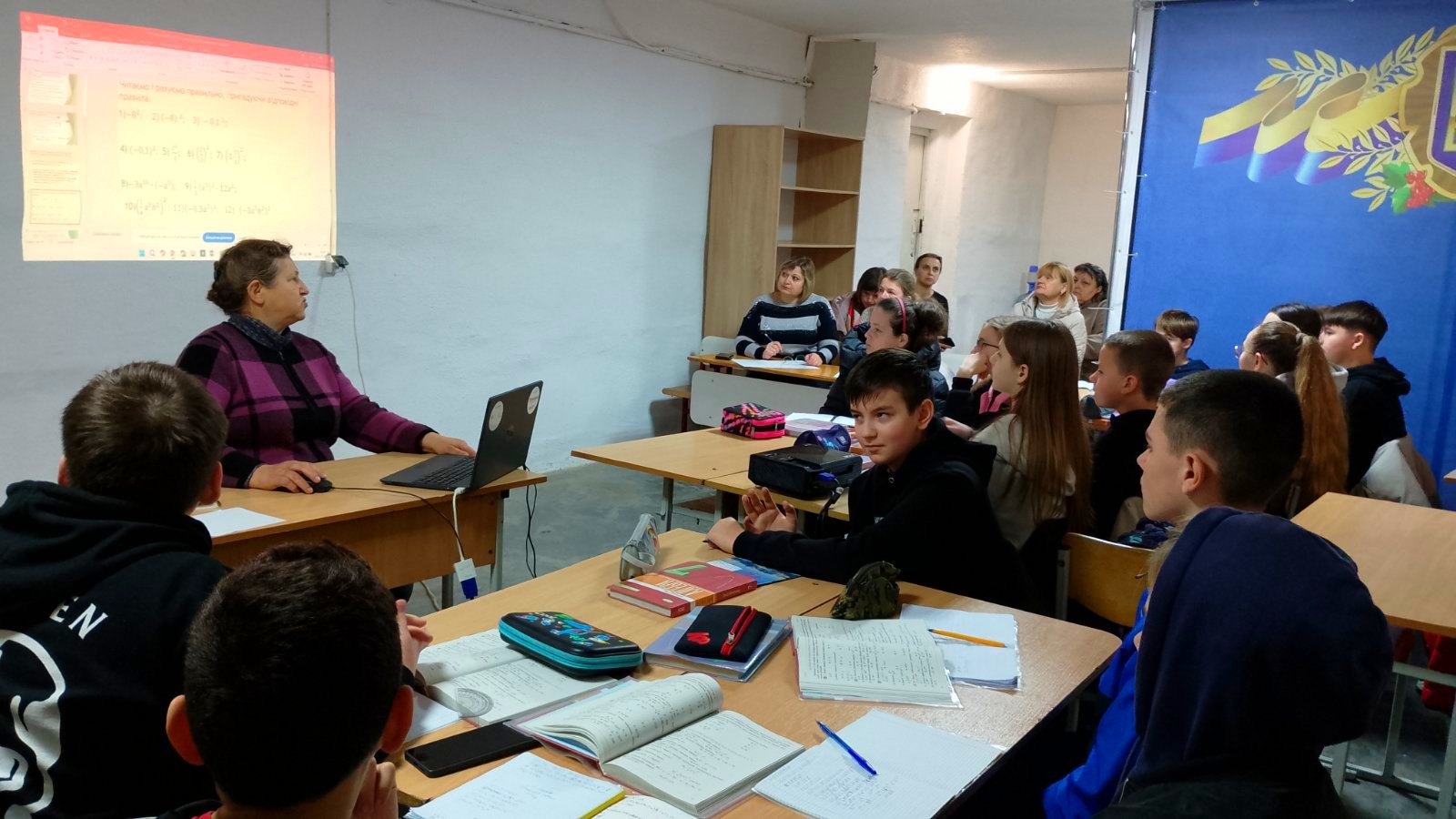 У межах атестації педагогічних працівників в укритті ліцею у 7-му класі відбувся відкритий урок з алгебри на тему: «Множення одночленів. Піднесення одночленів до степеня», проведений Дорогою Світланою Павлівною.
