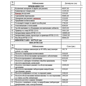 Кошторис закладу на 2020 рік