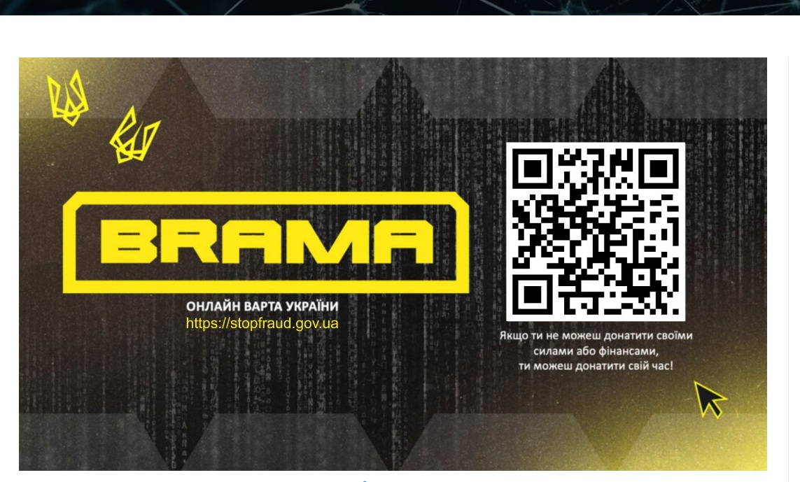 БРАМА (https://stopfraud.gov.ua/) – це онлайн-ресурс, розроблений за підтримки Кіберполіції, який допомагає громадянам ідентифікувати кіберзагрози, навчитися основам цифрової безпеки та повідомляти про інциденти шахрайства в мережі.