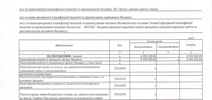 Кошторис закладу на 2020 рік