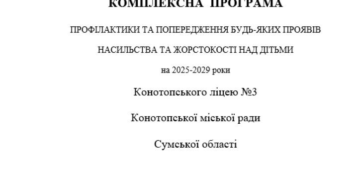 0 Комплексна програма профілактики та попередження будь-яких проявів насильства та жорстокості над дітьми на 2025-2029 роки 15 Гру, 2025