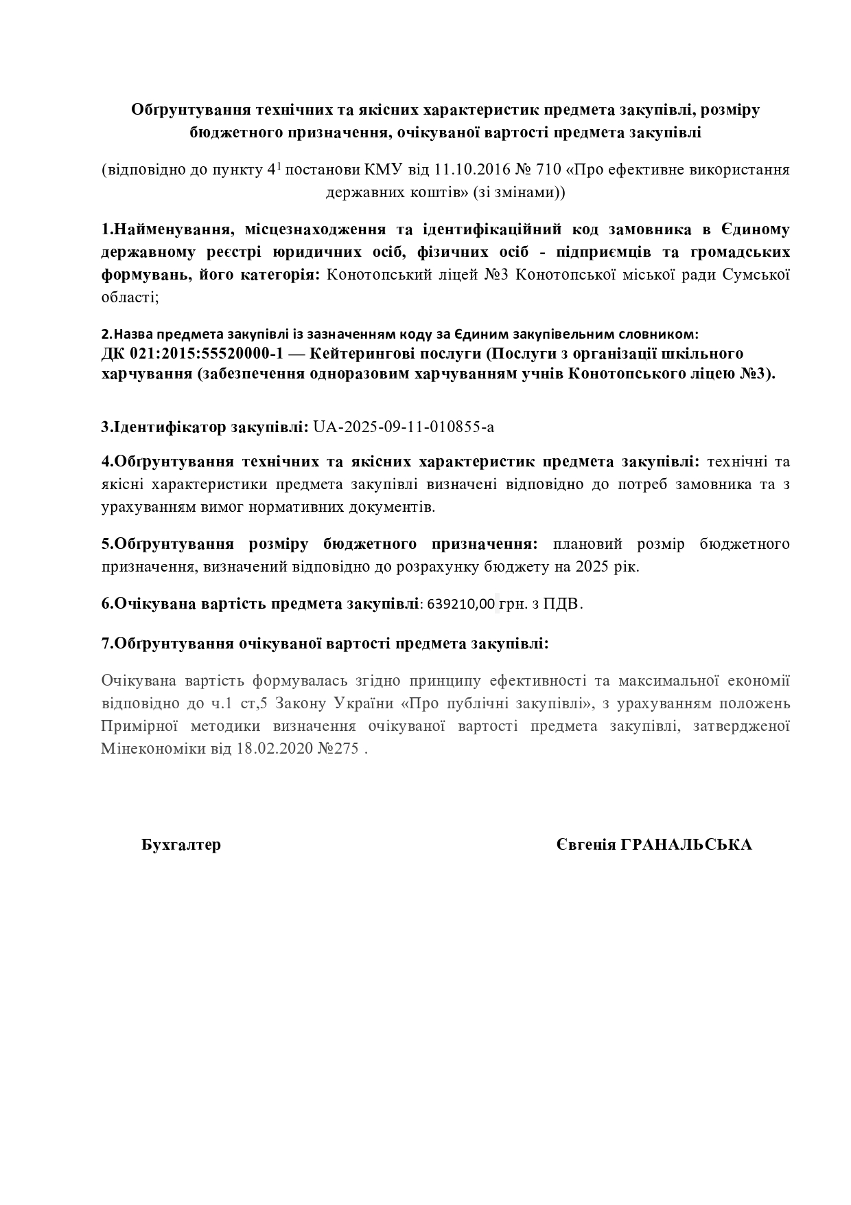 Обґрунтування технічних та якісних характеристик предмета закупівлі, розміру бюджетного призначення, очікуваної вартості предмета закупівлі (відповідно до пункту 41 постанови КМУ від 11.10.2016 № 710 «Про ефективне використання державних коштів» (зі змінами))