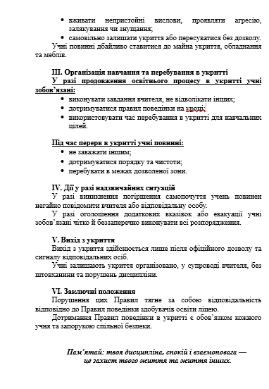 Правила поведінки здобувачів освіти в укритті ліцею